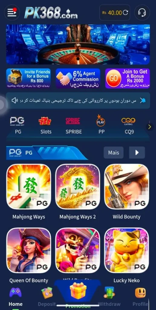 This earning application offers a modern and engaging gaming experience for users in Pakistan. With its variety of games, smooth performance, and accessible payment methods, it provides a balanced mix of entertainment and reward opportunities. Download PK368 Game APK today, explore Fortune Gems, Aviator, Roulette, Mines & Live Casino games, and start your journey with smart gameplay!
