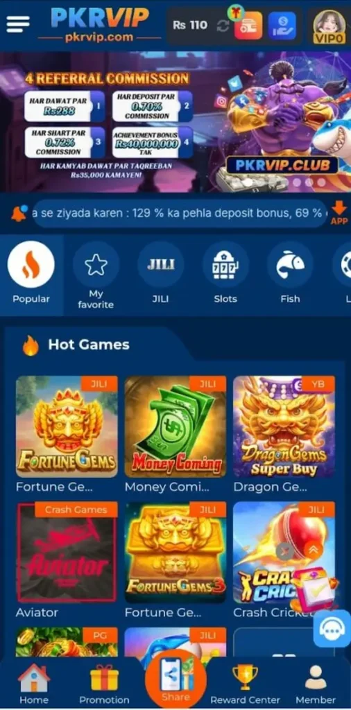 This reward application is a modern mobile gaming solution that combines entertainment with real earning potential. With its smooth interface, multiple game options, and reliable payment system, it provides a complete experience for users in Pakistan. This casino is designed to be simple yet rewarding, making it suitable for both beginners and experienced players. Download PKRVIP Game APK today, explore Fortune Gems, Aviator, Roulette, Mines & Live Casino games, and start earning smartly!